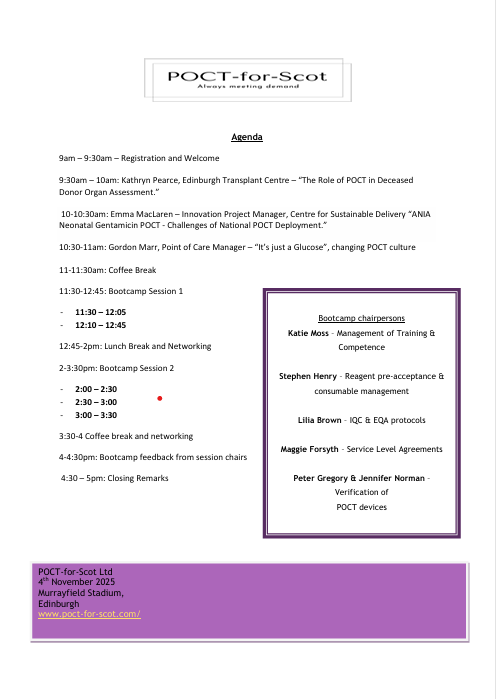 At this event, you'll have the opportunity to explore the latest advancements in POCT technology and how it is revolutionizing healthcare delivery. Engage with industry experts, participate in hands-on workshops, and discover how POCT is shaping the future of healthcare in Scotland.